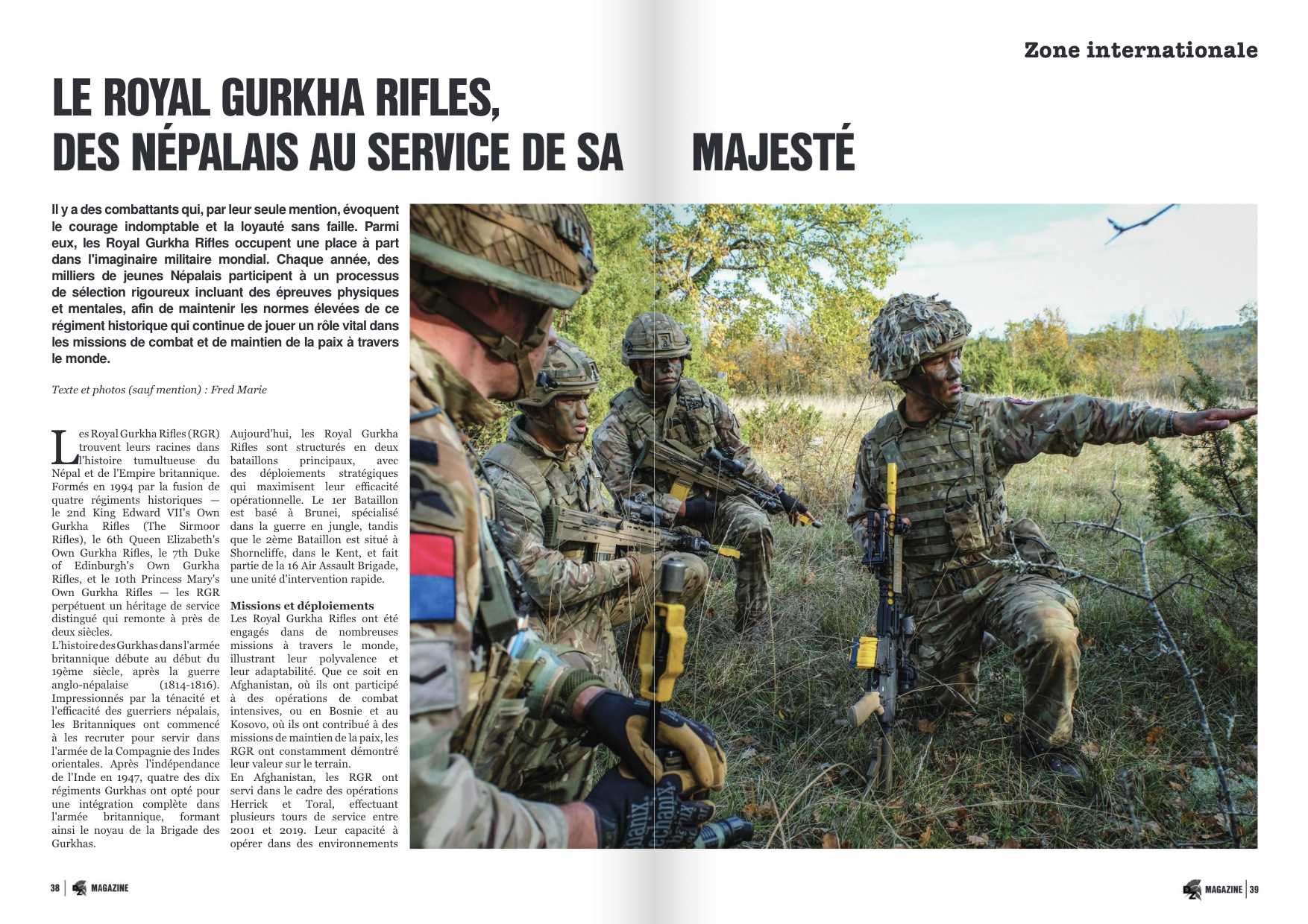 Plongez également dans les coulisses de la fabrication du Kevlar, ce matériau révolutionnaire utilisé dans les équipements de protection individuelle. Enfin, notre rubrique internationale met à l’honneur un régiment britannique de Gurkhas. Ces soldats népalais, connus pour leur bravoure et leur discipline, apportent une richesse unique et une valeur inestimable à l’armée britannique.