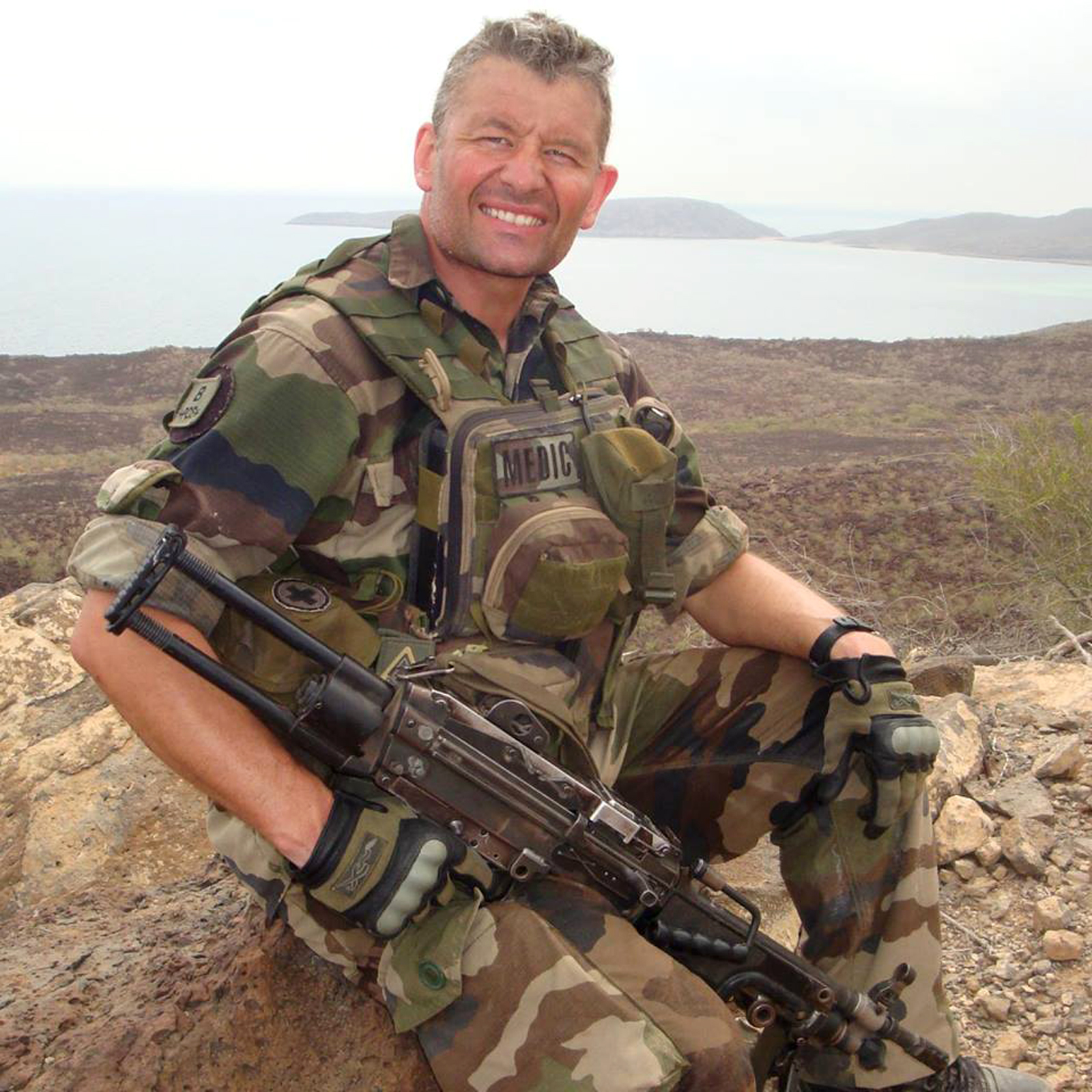 Claude Brunet est un ancien infirmier major de la Légion étrangère. Pendant plus de 20 ans, ce militaire de carrière a servi comme "combat medic" sur tous les théâtres de guerre (Kosovo, RCA, Tchad, Somalie, Afghanistan, etc).