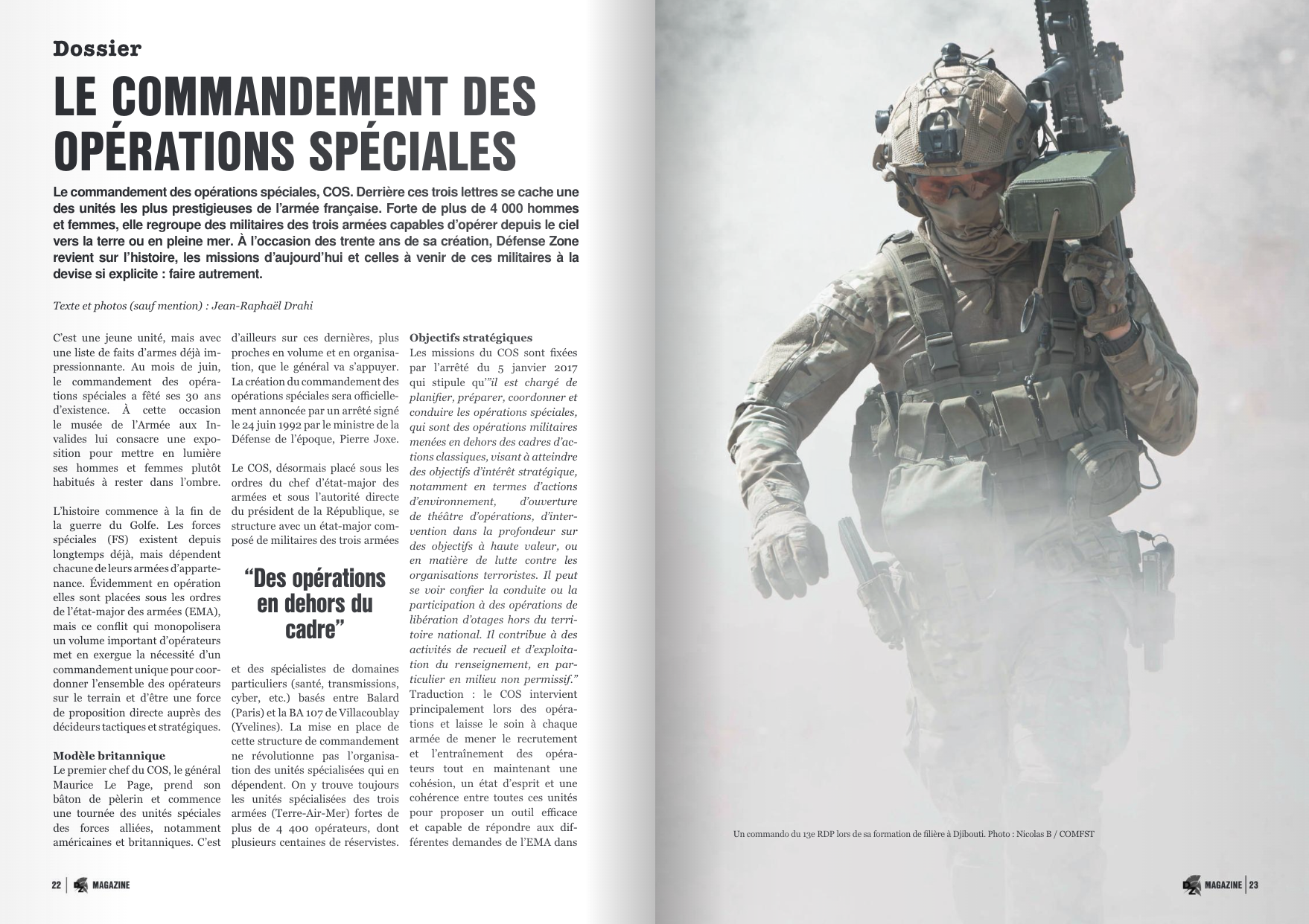 Oui, ce numéro est exceptionnel, et ce à plusieurs égards. Tout d’abord parce que nous avons fait le choix de vous proposer un dossier sur une composante “exceptionnelle” de l’armée française, à savoir les forces spéciales. Placés sous l’égide du COS, le commandement des opérations spéciales, les hommes et les femmes qui composent les unités FS sont en charge des missions les plus complexes et souvent les plus dangereuses. Libération d’otages ou encore neutralisation de cibles derrière les lignes ennemies, nous vous amenons dans les coulisses des opérations spéciales et nous vous proposons un éclairage inédit sur ces soldats de l’ombre.