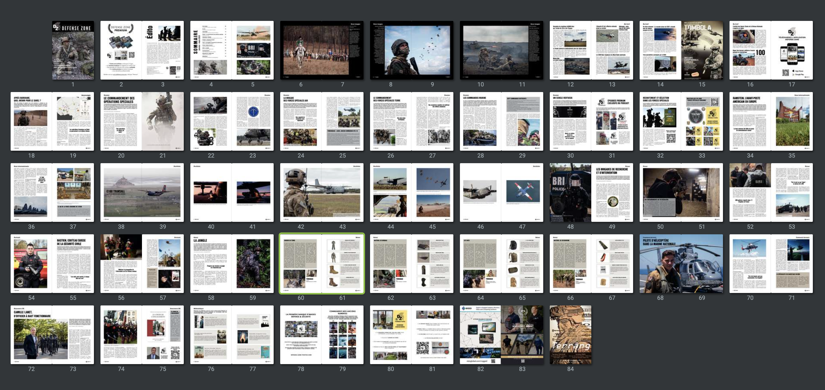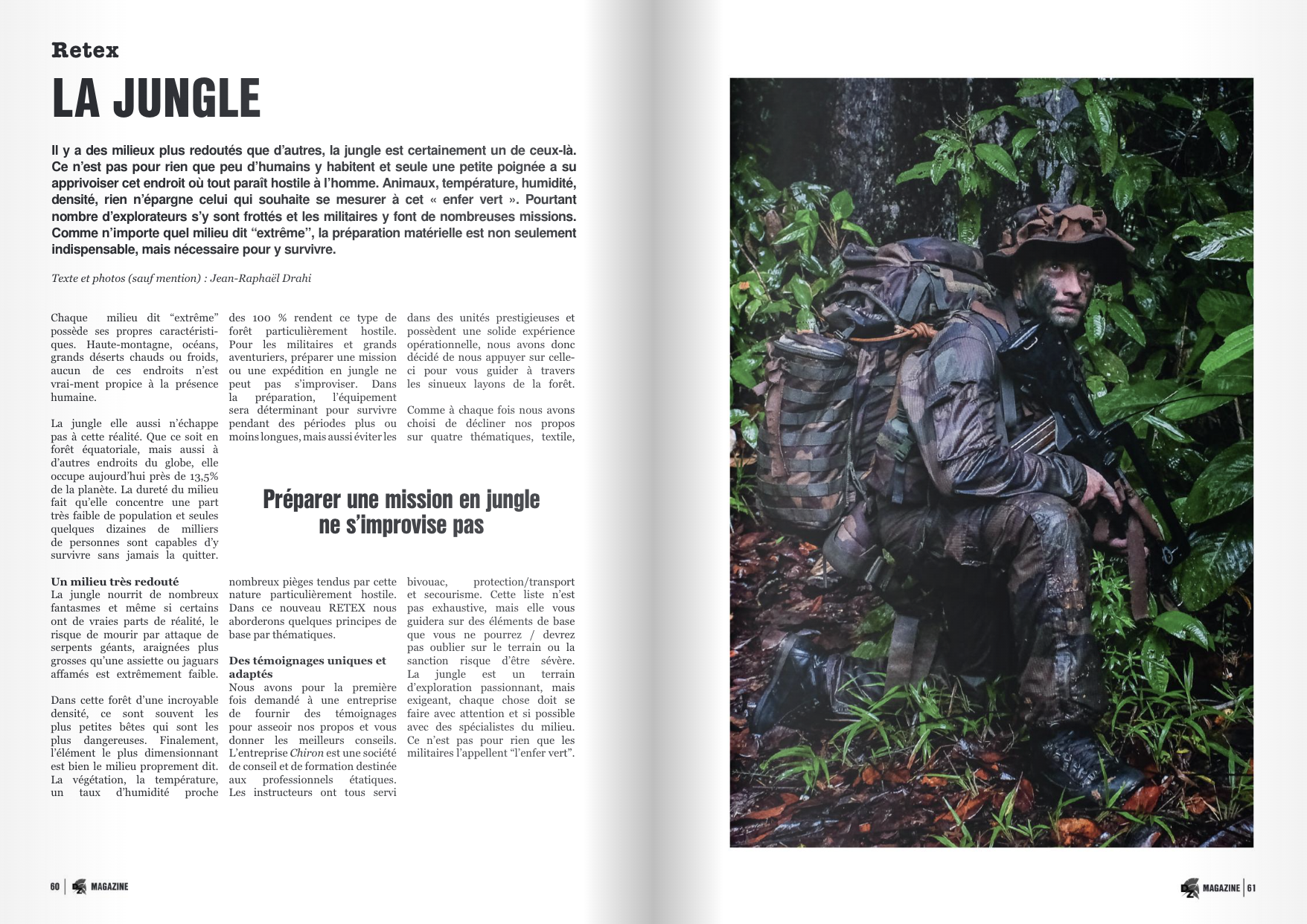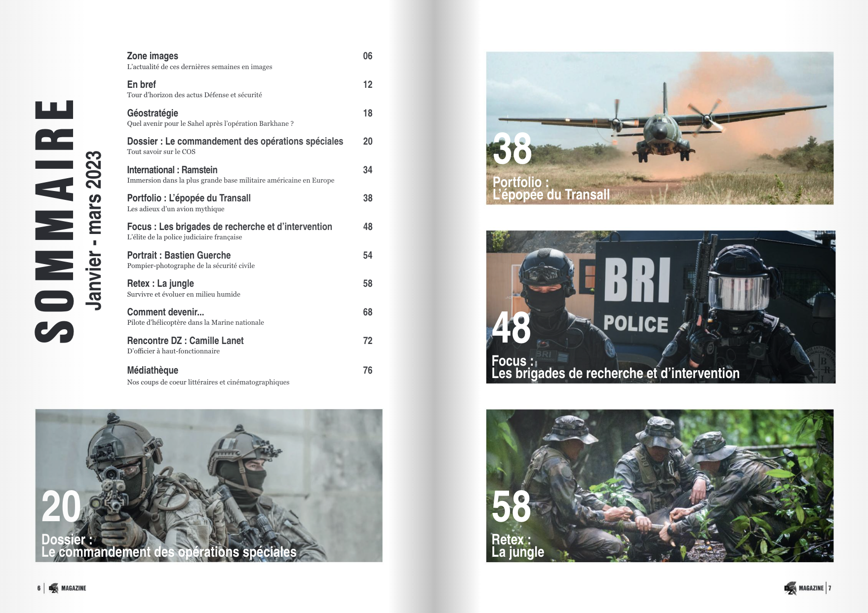 de Saint-Cyr. Nous découvrirons les spécificités du métier de pilote d’hélicoptère dans la Marine nationale, nous visiterons la base de Ramstein, l’avant-poste de l’US Air Force en Europe, avant de partir en patrouille dans la jungle où un retex matériel très complet vous attend. En bref, nous vous proposons une fois encore des récits, des interviews et des reportages de terrain uniques que, nous l’espérons, vous prendrez plaisir à lire et partager autour de vous.