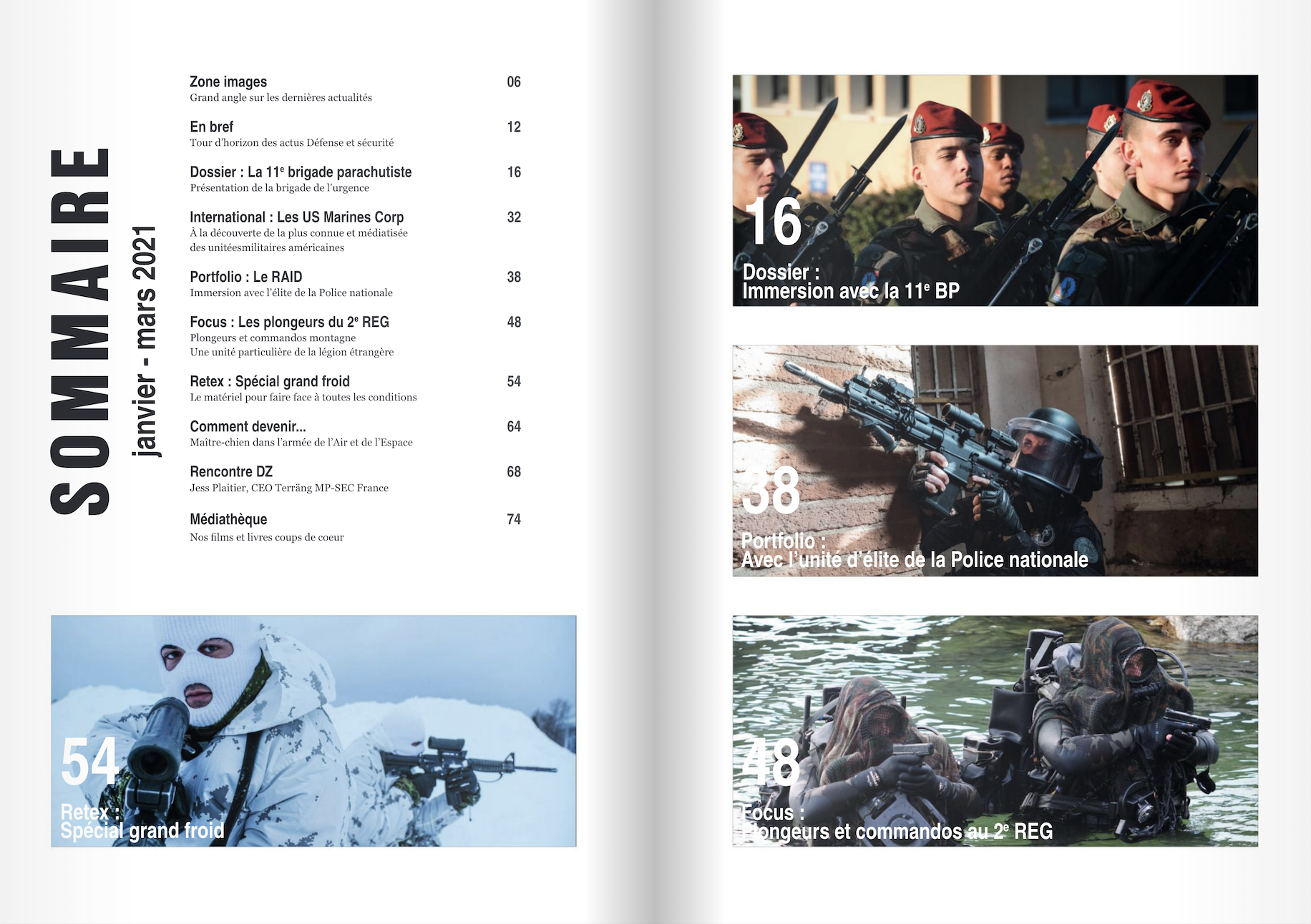 Pour ce premier numéro, nous vous amenons avec nous dans les coulisses de l’Armée de Terre, avec un dossier complet sur les paras de la Brigade de l’urgence, puis sous l’eau avec les commandos montagne de la Légion étrangère.