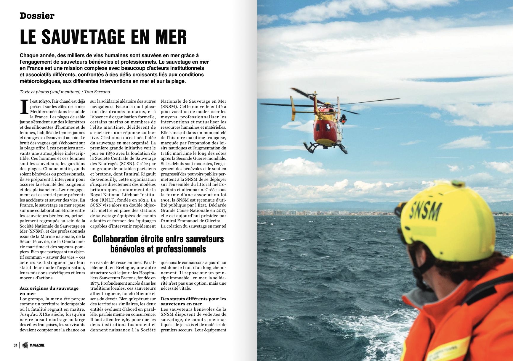 10 pages de dossier sur les hommes et femmes qui veillent sur la protection des baigneurs et des marins.