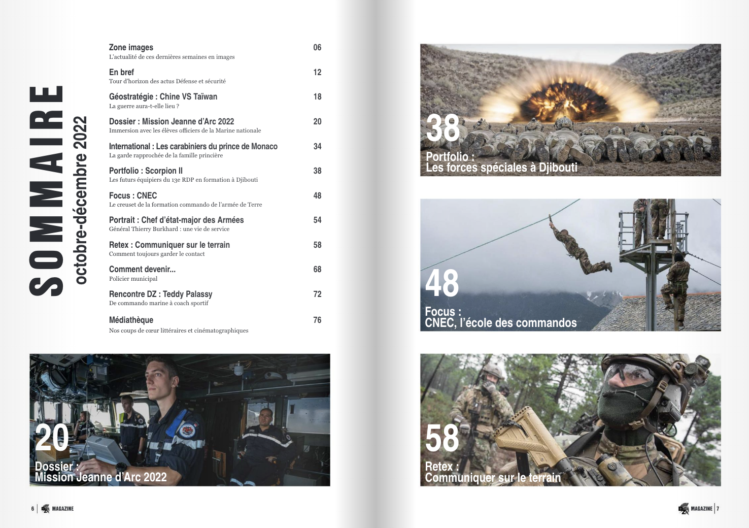Pas besoin d’attendre d’être à la page 20 de ce magazine pour vous dire que l’expérience était incroyable et que nous vous avons ramené de belles images et de fascinants témoignages, notamment sous format audio, à travers des épisodes exclusifs du podcast, dans votre espace Premium. Avant d’aller y jeter une oreille, préparez-vous à en prendre plein les yeux en admirant les impressionnantes photos du dernier entraînement des forces spéciales à Djibouti. Et si vous avez encore envie d’action, un petit tour par la piste d’audace du centre national d’entraînement commando (CNEC) vous attend.